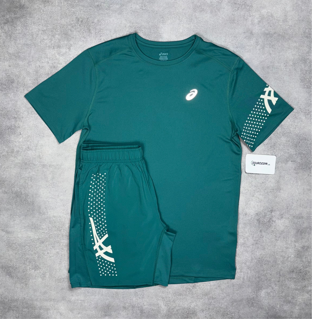 Asics Icon T-Shirt Rainy Lake & Rainy Lake 7” Icon Shorts Set