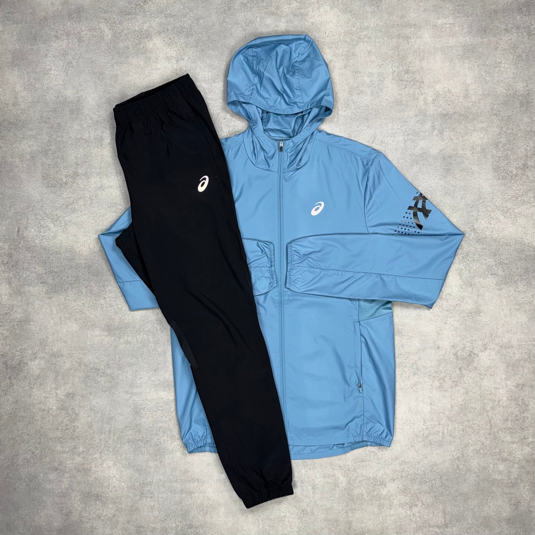 Asics Icon Windrunner Ash Blue & Black Core Bottoms Set