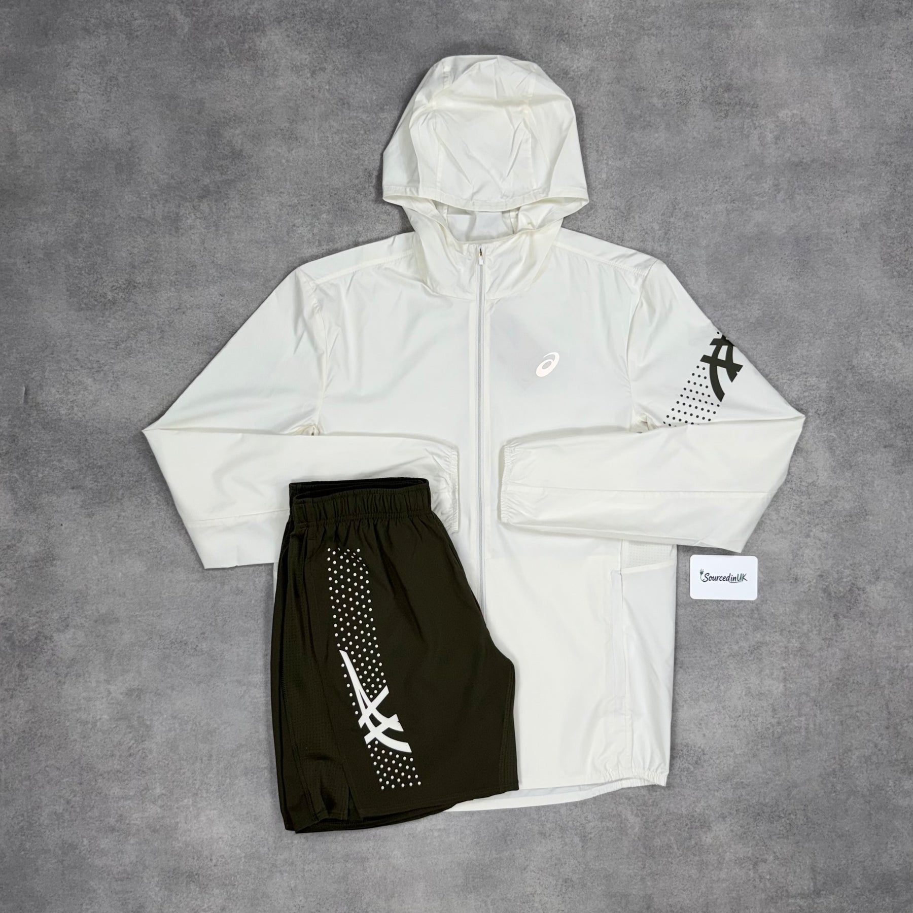 Asics Icon Windrunner Jacket Cream & 7” Brown Icon Challenger Short Set