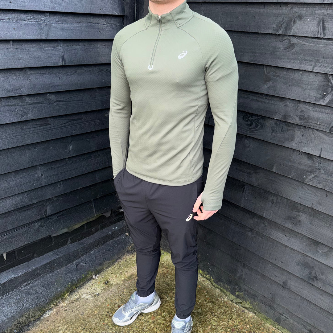 Asics Therma 1/4 Zip Khaki & Asics Core Bottoms Black