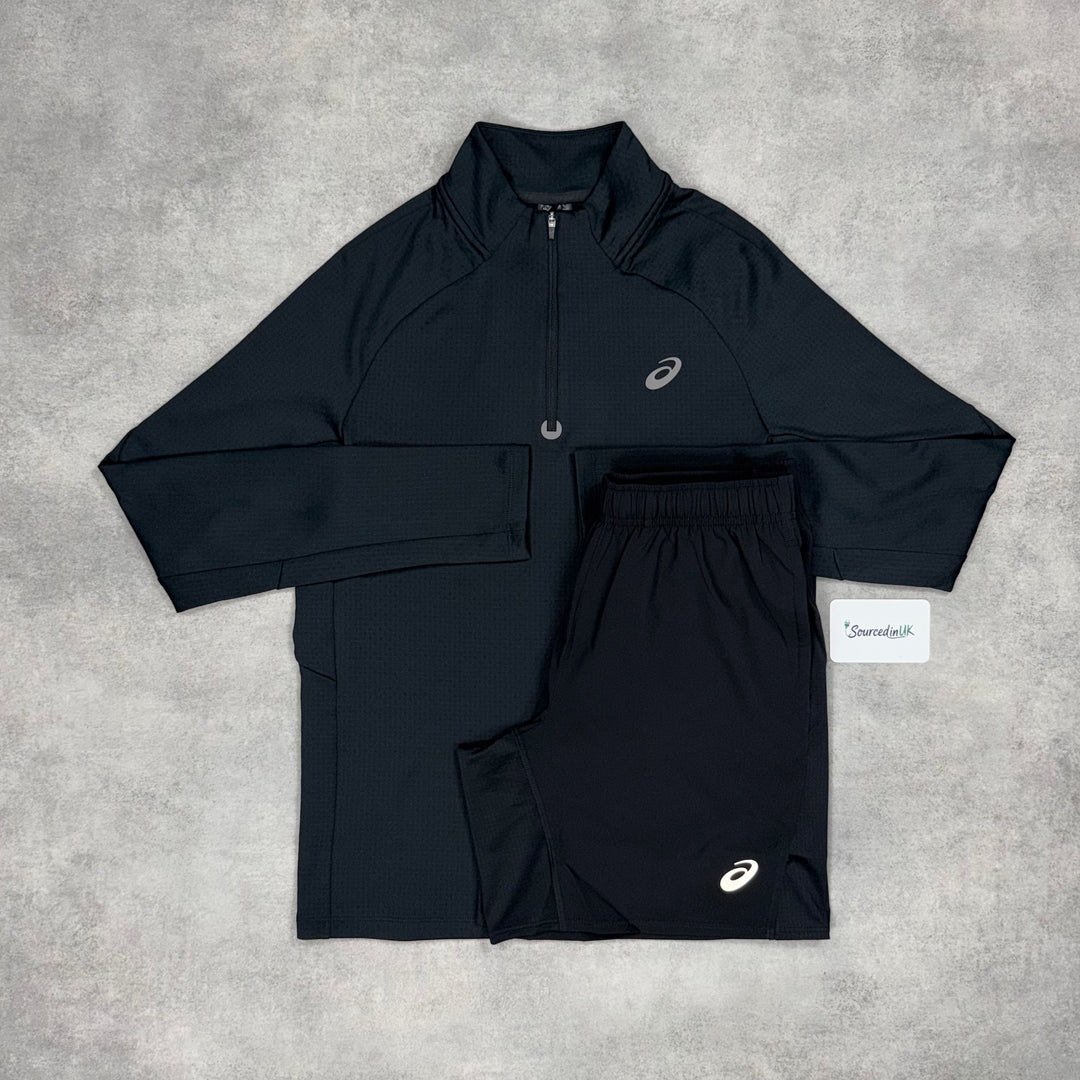 Asics Therma 1/4 Black & Black 7" Challenger Short Set