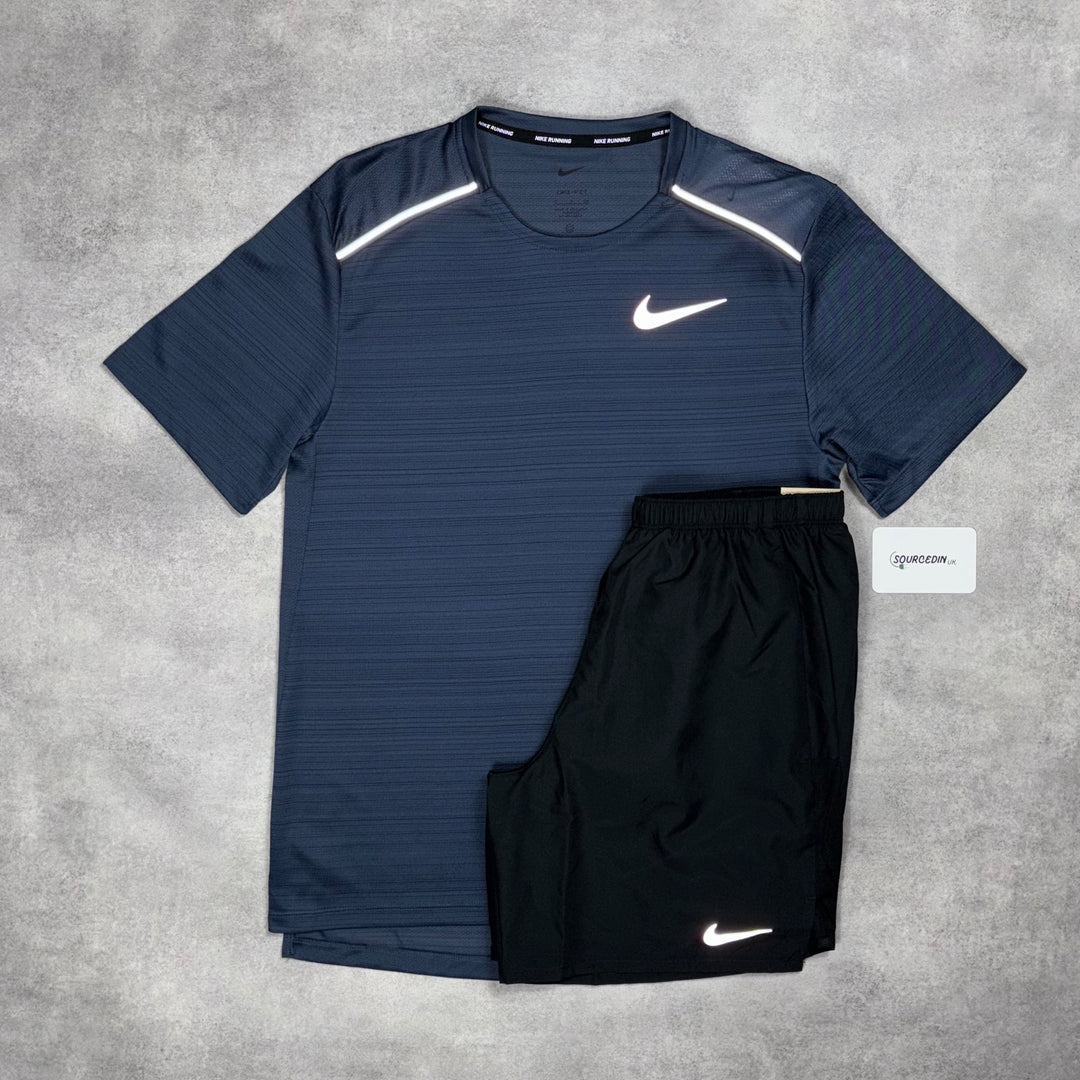 Nike Miler T-Shirt Thunder Blue & Grey/Black 7" Challenger Short Set